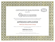 Absolute Powder Coating provides powder coating services for Military and Government operations. We have hundreds of powder coating jobs under our belt, both large and small, and are here to meet your needs. Absolute Powder Coating LLC conforms to State, Department of Defense, Military, Departments of the Government, and Commercial specifications. We are ITAR Registered and an approved applicator of Tiger Drylac Military Coatings.